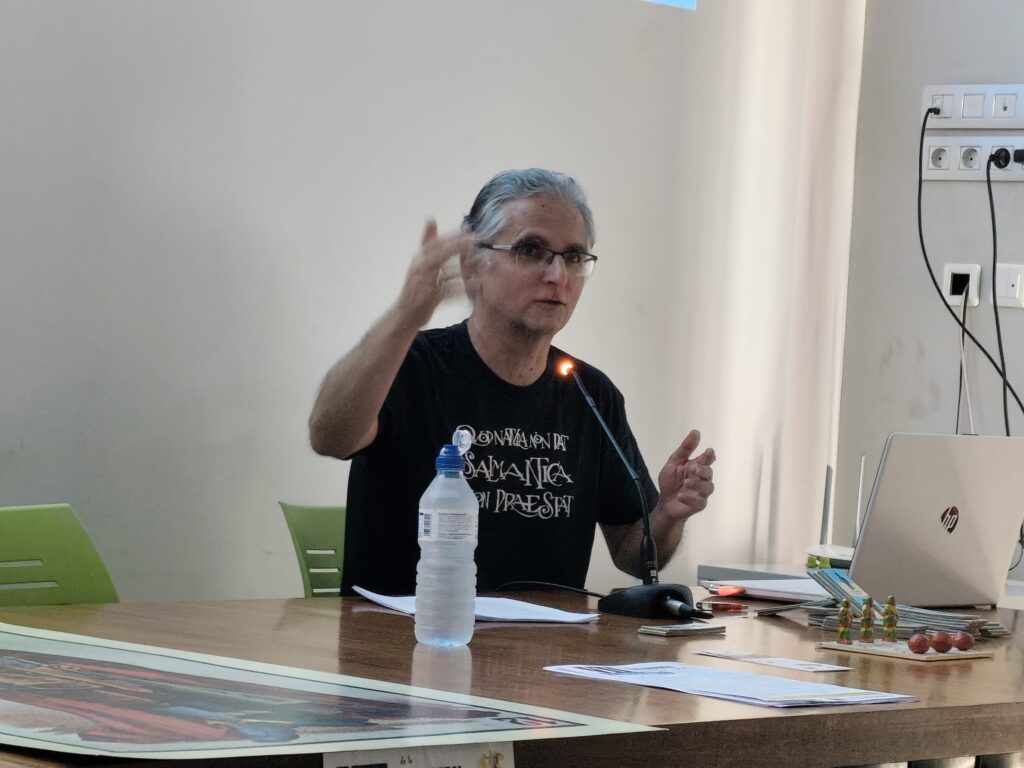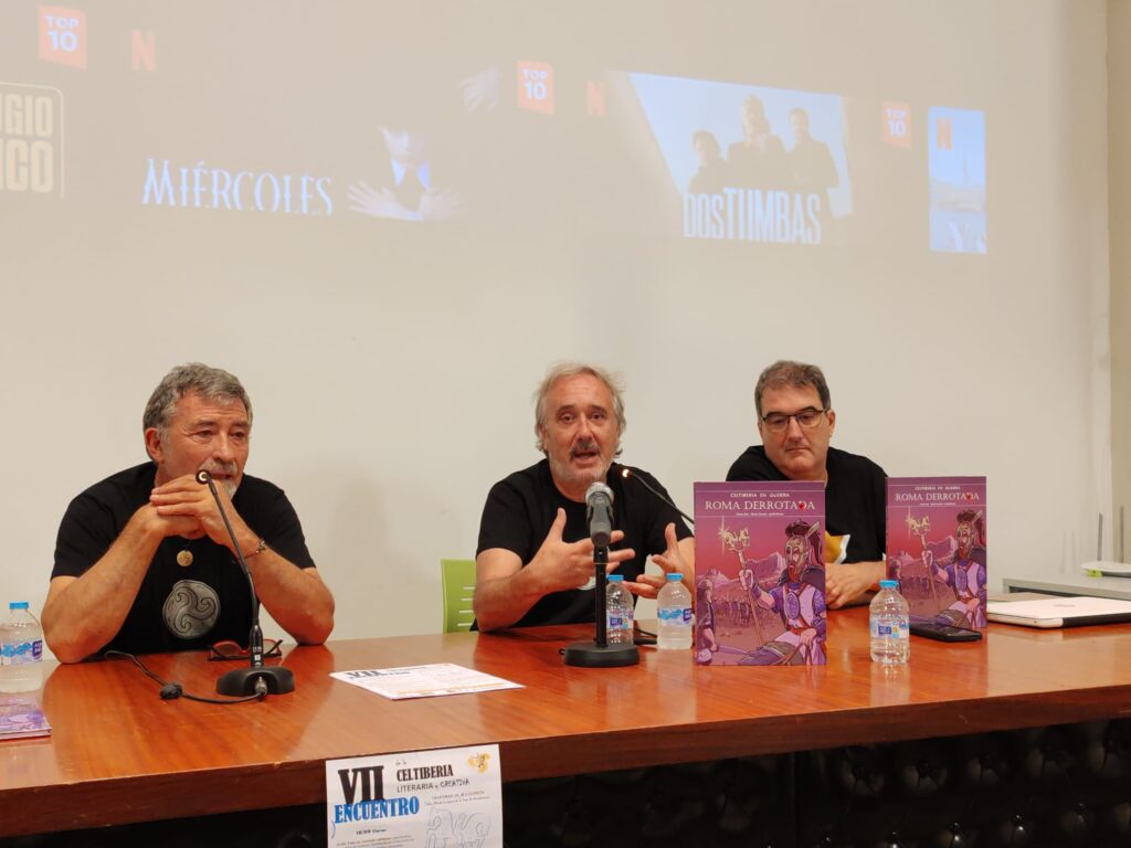La sesión vespertina comenzó con la conferencia Pastos, cañadas y caminos de costumbre en la articulación de nuestro territorio fronterizo, con la intervención de la arqueóloga Marta Chordá y el historiador y activista rural Alberto Jiménez, quienes nos revelaron hasta qué punto la confluencia de los caminos en y por determinadas ubicaciones constituyeron una un mapa reticular para la cultura, el comercio y la ganadería su analogía con muchas de las actuales vías de tránsito carretero. Continuó con la mesa redonda en torno al cómic «Roma derrotada», primera entrega de la trilogía de GP Ediciones Celtiberia en guerra, con la participación del editor Daniel Viñuales y los guionistas Alberto Gonzalo y Hernán Ruiz. El dibujante Juanfer Briones excusó su presencia por motivos personales.